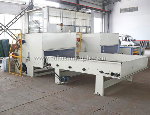 將單一或多種規(guī)格生產(chǎn)原料經(jīng)本機(jī)初步開(kāi)松混合以后,通過(guò)輸棉風(fēng)機(jī)輸入下道工序。該設(shè)備由喂入平簾、喂棉羅拉、開(kāi)松輥、風(fēng)機(jī)及輸棉管道內(nèi)金屬去除裝置、傳動(dòng)機(jī)構(gòu)組成。設(shè)備所有機(jī)架及配件都有激光切割完成,整體精度高。